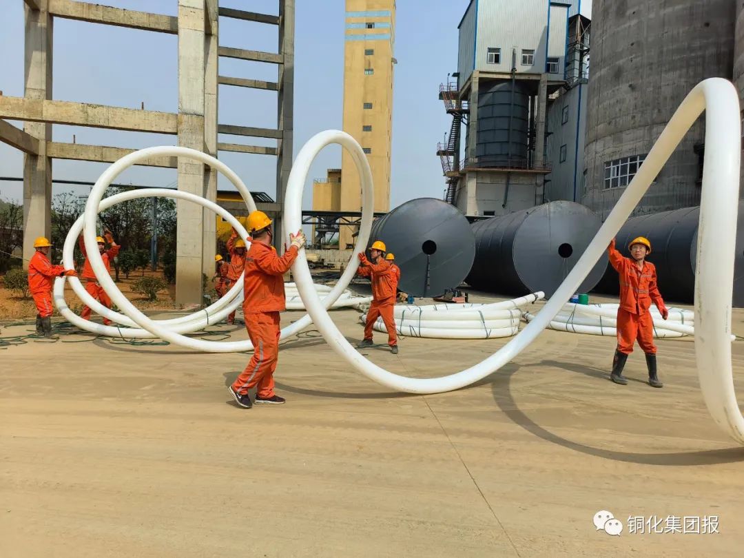 “一二三,拉!一二三,拉!……后面的注意安全!……”一聲聲號(hào)子,一句句提醒回蕩在新橋礦業(yè)公司露天礦邊坡上空,這是 4月17日新橋礦業(yè)公司工程工區(qū)充填班為露天采坑生態(tài)修復(fù)工程鋪設(shè)充填管道現(xiàn)場(chǎng)的一幕。