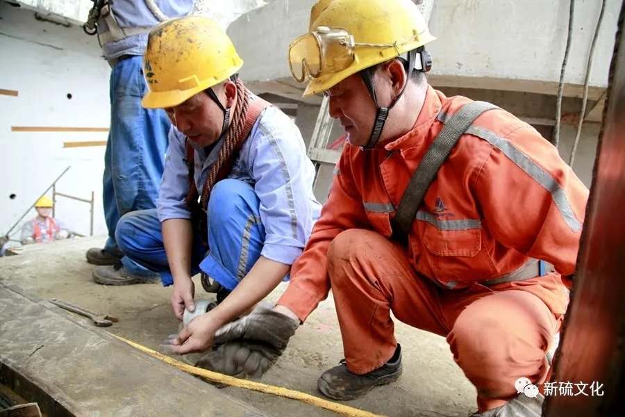 地面上大吊車、大貨車,選礦廠相關(guān)負(fù)責(zé)人、技術(shù)人員、安全員等忙著起吊龐然大物時,“焊高組”在底座上也一刻沒閑著,拖運電焊設(shè)備、準(zhǔn)備焊接材料、在底座上鋪水泥保持平面,各個槽體支腳找平衡......由于底座緊挨著磨浮車間,空氣不流通,加上天氣悶熱難擋,武裝整齊的好“焊”們一會就汗?jié)窳斯ぷ鞣怪轫樦踩眽褐陌l(fā)根往下滾。